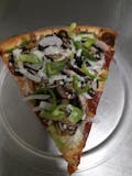 Sausage, pepperoni, mushrooms, green peppers, onions & black olives.